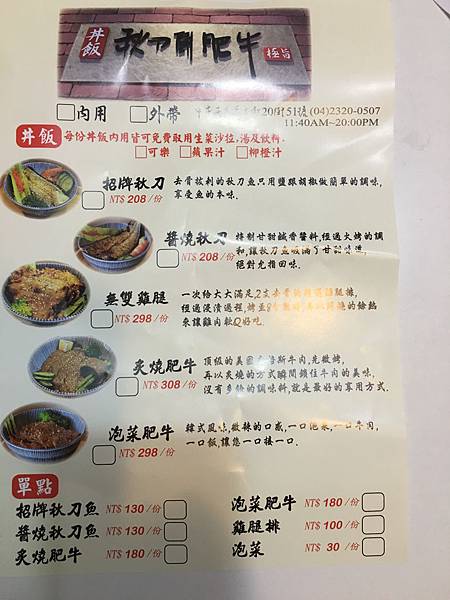 家附近開了一家新的丼飯,早就想來試試。但是帶著寶寶的媽媽實在沒勇氣自己帶阿胖去餐廳吃飯=,=畢竟我在火鍋店有著慘痛的經驗⋯⋯⋯今天陪小姑看完永豐棧的婚宴場地後,婆婆提議吃吃看,喔耶!二打一就沒問題了~不知道是不是促銷活動,現在點飯附湯、沙拉&飲料(瓶裝的可樂、美粒果的柳橙汁、蘋果汁)菜單挺簡單的